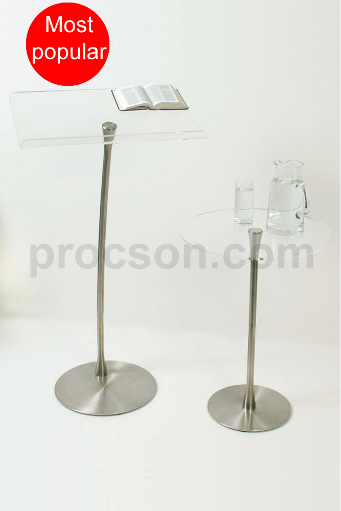 This means you need anti reflective film. Most preachers like a drink of water beside them, within easy reach. This means you need a water table. Most preachers prefer the larger 70cm/28" wide top. Click here to learn more about anti reflective film.